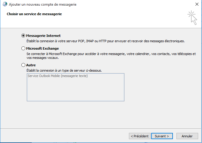 Ensuite, cliquez sur l'onglet, “Messagerie Internet”.
