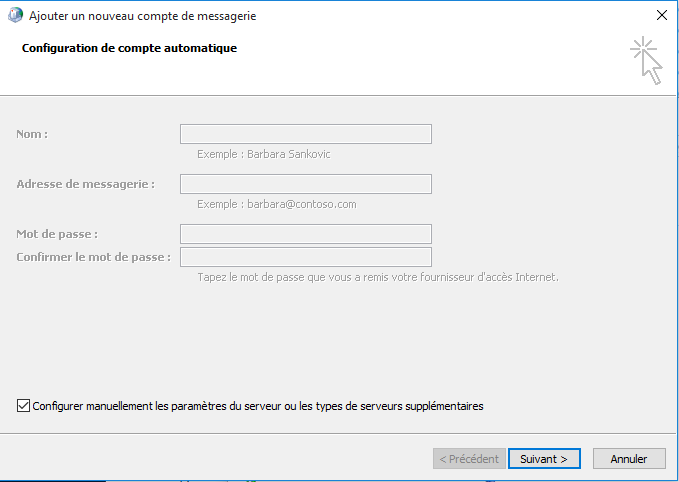 Ensuite, cliquez sur l'onglet, “Configurer manuellement les paramètres du serveur …”.