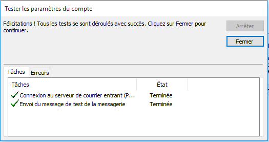 Cliquez pour tester vos paramètres :