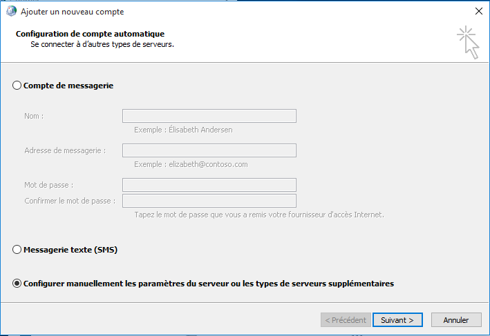 Ensuite, cliquez sur l'onglet, “Configurer manuellement les paramètres du serveur …”.