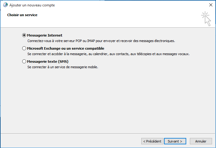 Ensuite, cliquez sur l'onglet, “Messagerie Internet”.