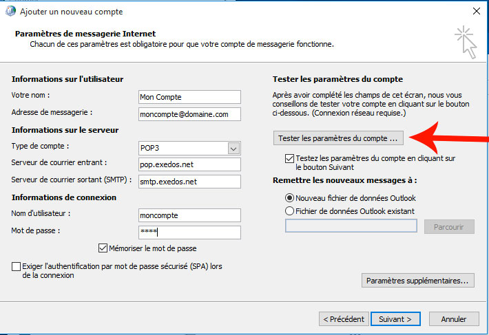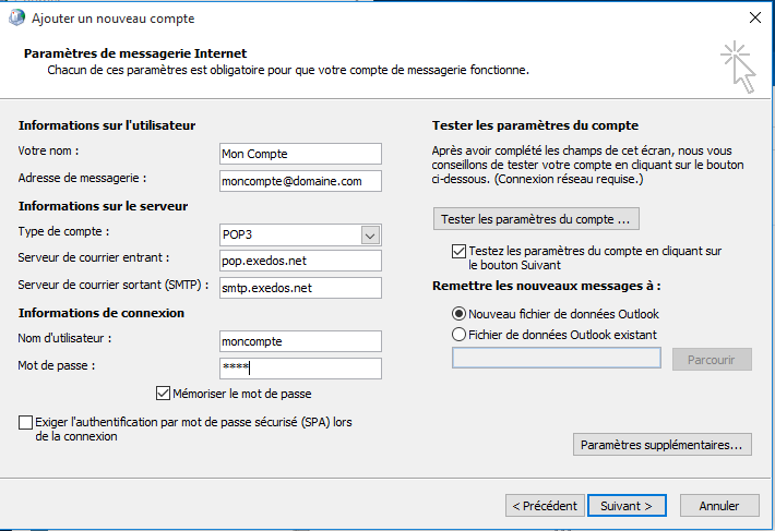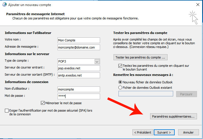 Configurer votre compte Exedos Mail avec Outlook Office 2010