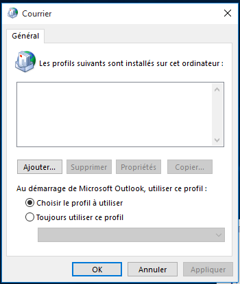 Créer un compte POP : Qui permet à Outlook Office 2016 d'aller chercher les messages reçus sur le serveur de mails. Cliquez sur l'icone qui ce trouve dans votre panneau de configuration de windows (Généralement appeler “Mail (Microsoft Outlook 2016”)(32 bits).