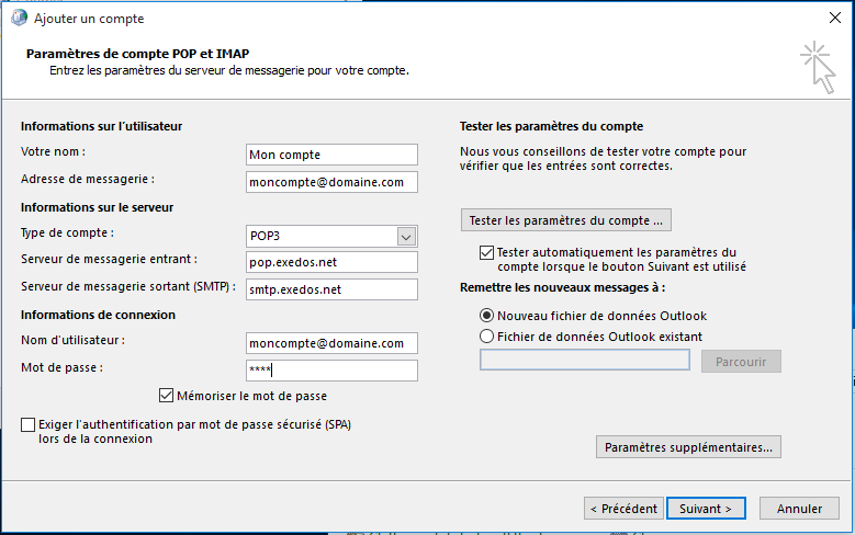 Configurer votre compte Exedos Mail avec Outlook Office 2016