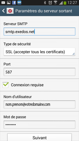 - Serveur sortant: