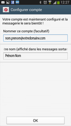 - Ainsi que le nom que vous voulez donner à votre compte et votre nom tel qu'il apparaîtra aux destinataires des messages.