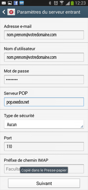 Les captures d'écran suivantes ont été prises sur un Samsung Galaxy S3