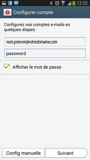 Les captures d'écran suivantes ont été prises sur un Samsung Galaxy S3